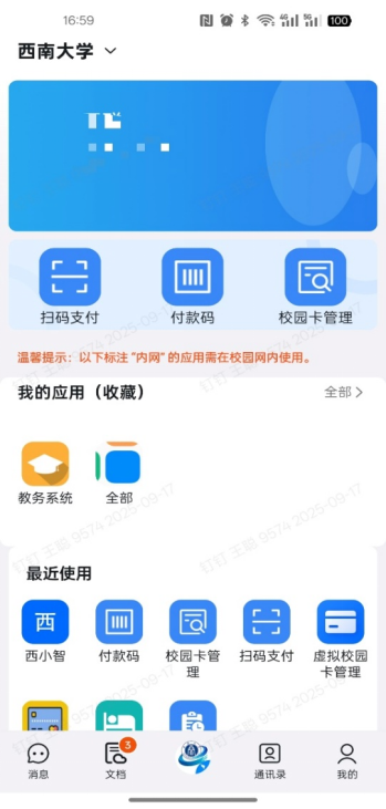 1. 未注册过“数智西大”或“钉钉”的用户注册成功后,会默认进入“西南大学”团队。